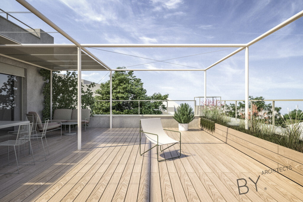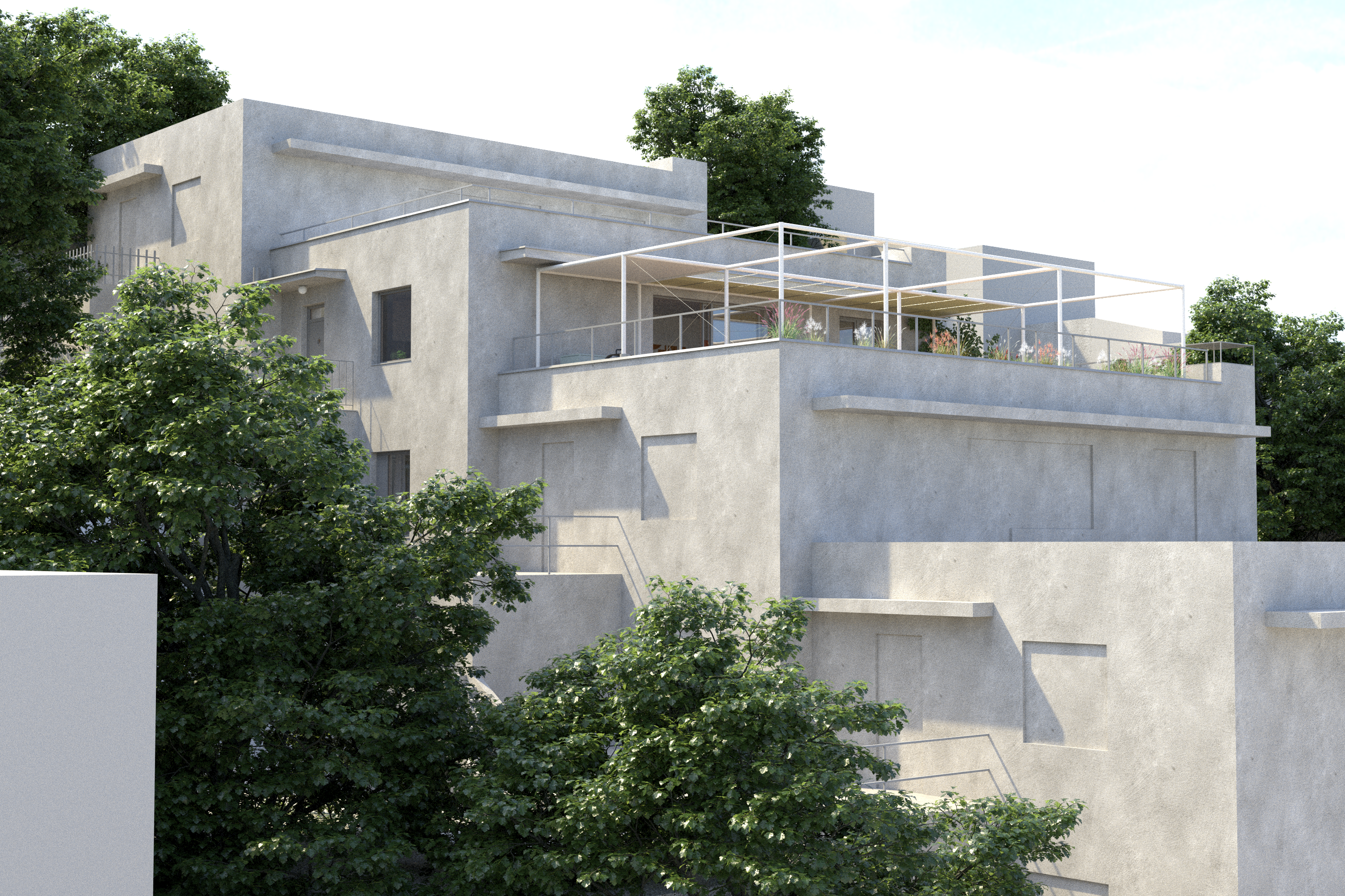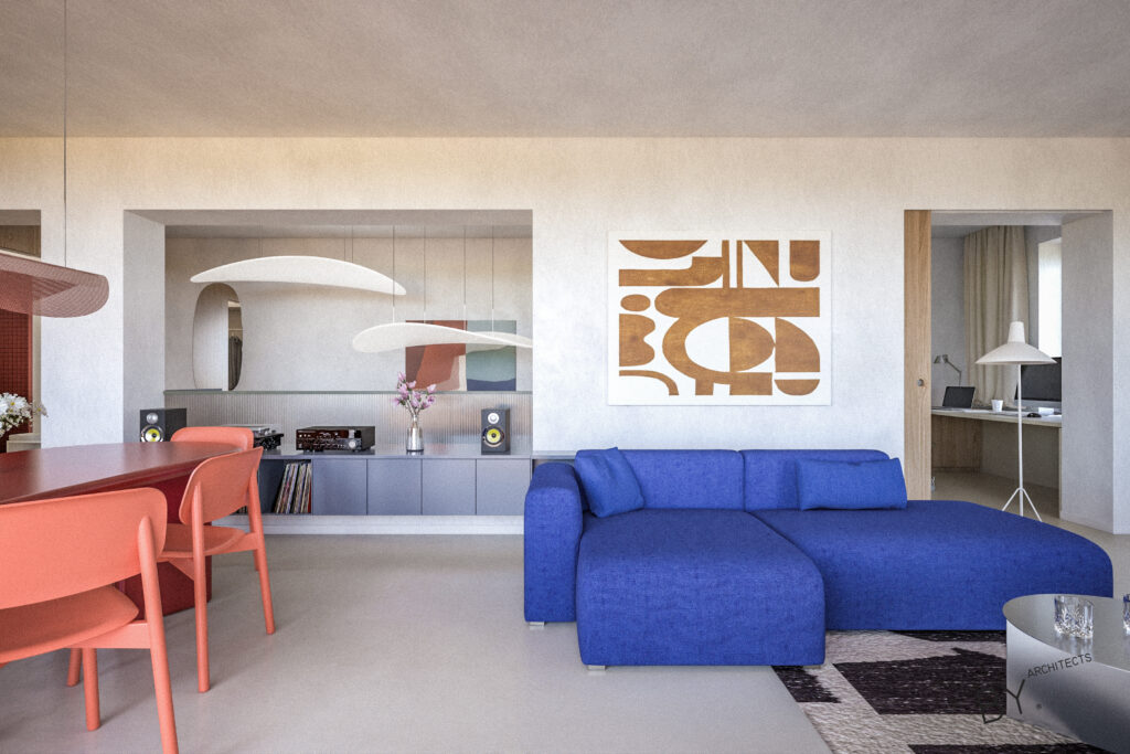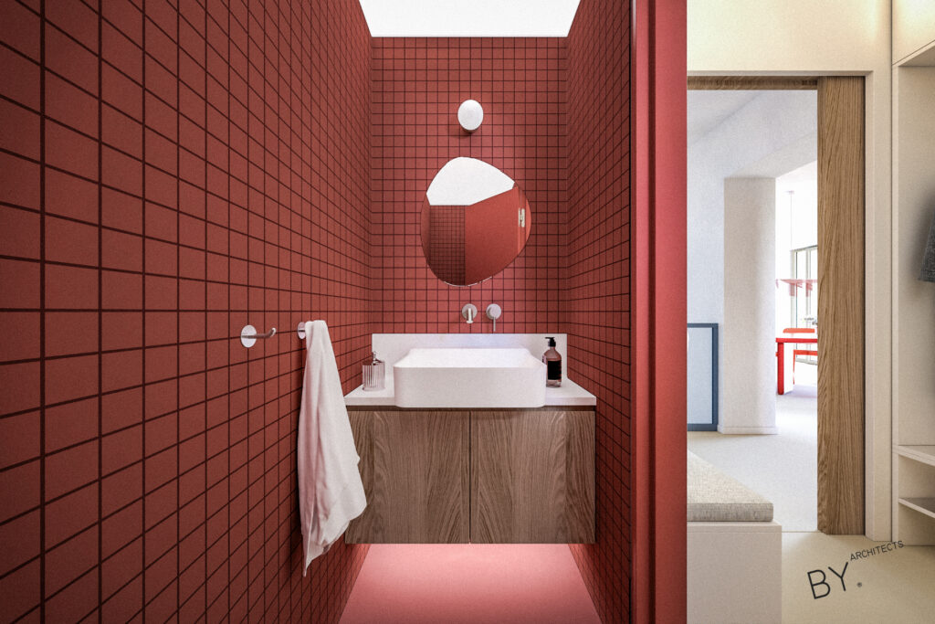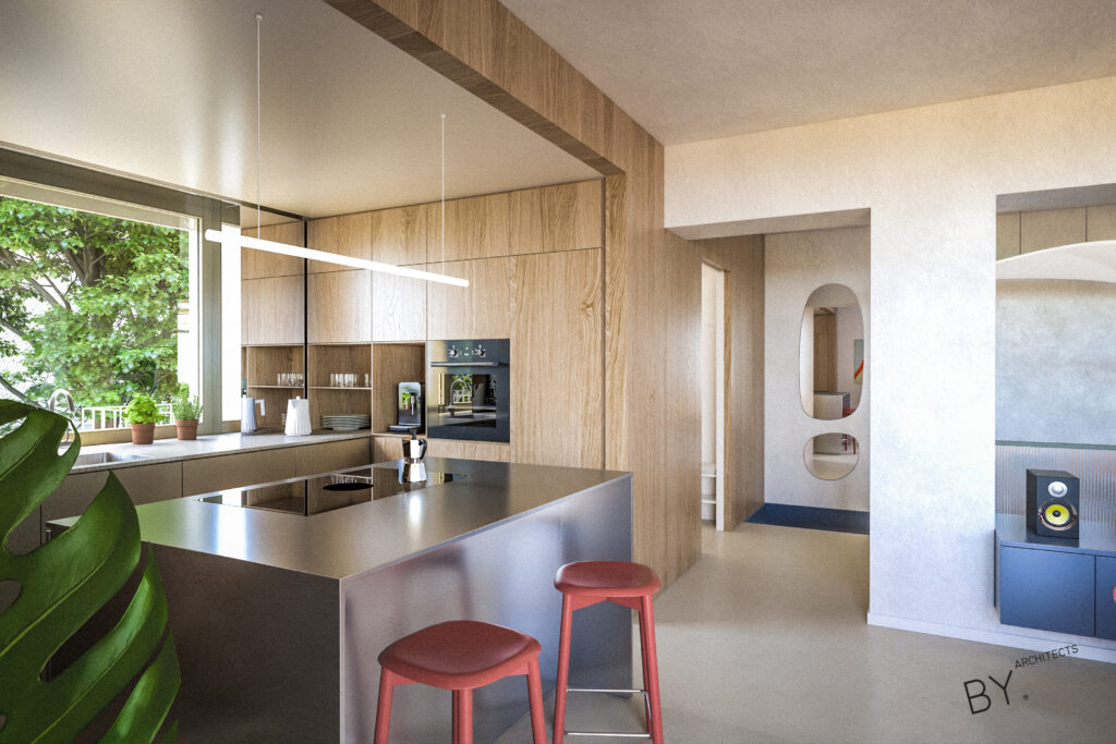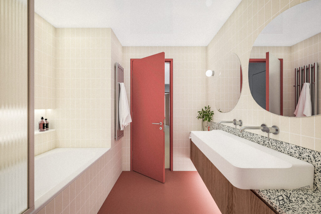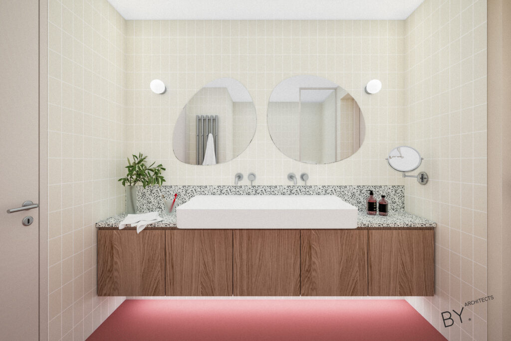 Přerovnání jednoho z domů na pražských Hřebenkách. Měli jsme možnost prostudovat specifickou typologii terasových domů, kde je spodní podlaží s ložnicemi chabě osvětleno. My jsem se s tímto problémem vypořádali průrazem mezi podlažími, díky kterému získává dům velkorysost odpovídající jeho objemu i lokalitě.